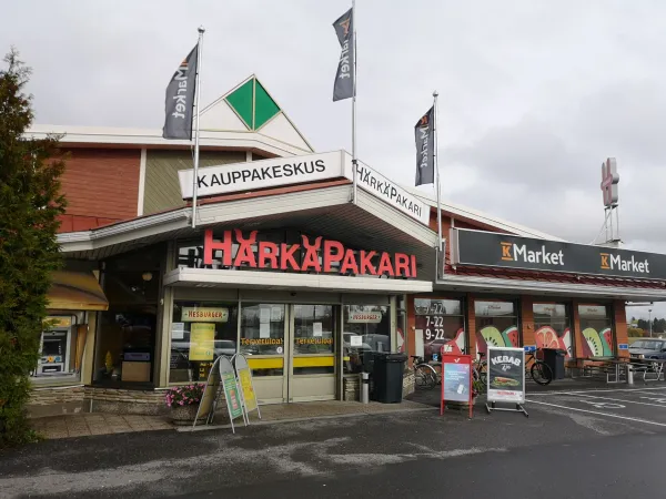 K-Market löytyy helposti ja näkyvästi Härkäpakarin liikenneasemalta, osoitteesta Risto Rytin katu 2, Huittinen.